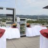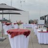 Die große Dachterrasse über dem 5. OG bietet Platz für bis zu 95 Personen und kann in den Monaten Mai bis September bis 23:00 genutzt werden, von Oktober bis Februar bis 22:00.