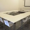 Die Räumlichkeiten verfügen über ein modernes, schlichtes Design mit grauem Schiefer-Boden, grauer Alu-Streckmetalldecke und weißen Wänden.