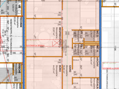 Derzeit in Bauphase, deswegen sind die Mietflächen noch frei einteilbar und gestaltbar.